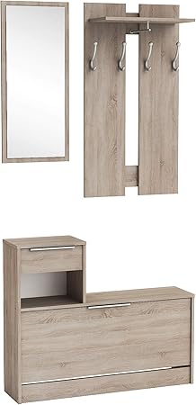 Demeyere Welcome A5 Vestiaire D Entree En Bois Avec Porte Manteau Miroir Vide Poche Et Meuble A Chaussures Design Moderne Collection Clothhangers Chene Brosse 98 Cm X 26 Cm X 200 Cm Amazon Fr Cuisine Maison