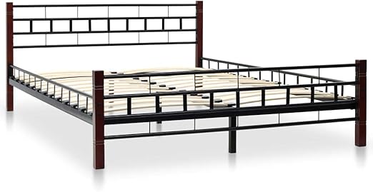 Tidyard Cadre De Lit Et Sommier A Lattes Metal Pour 2 Personnes 140x200cm Design Poteau En Bois Amazon Fr Cuisine Maison